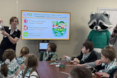 Первыми посетителями стали ученики местной школы: вместе с енотом Кузей они учились сортировать мусор, делали поделки из крышечек. Школьников приняли в «Эколята», юные защитники природы дали торжественную клятву.